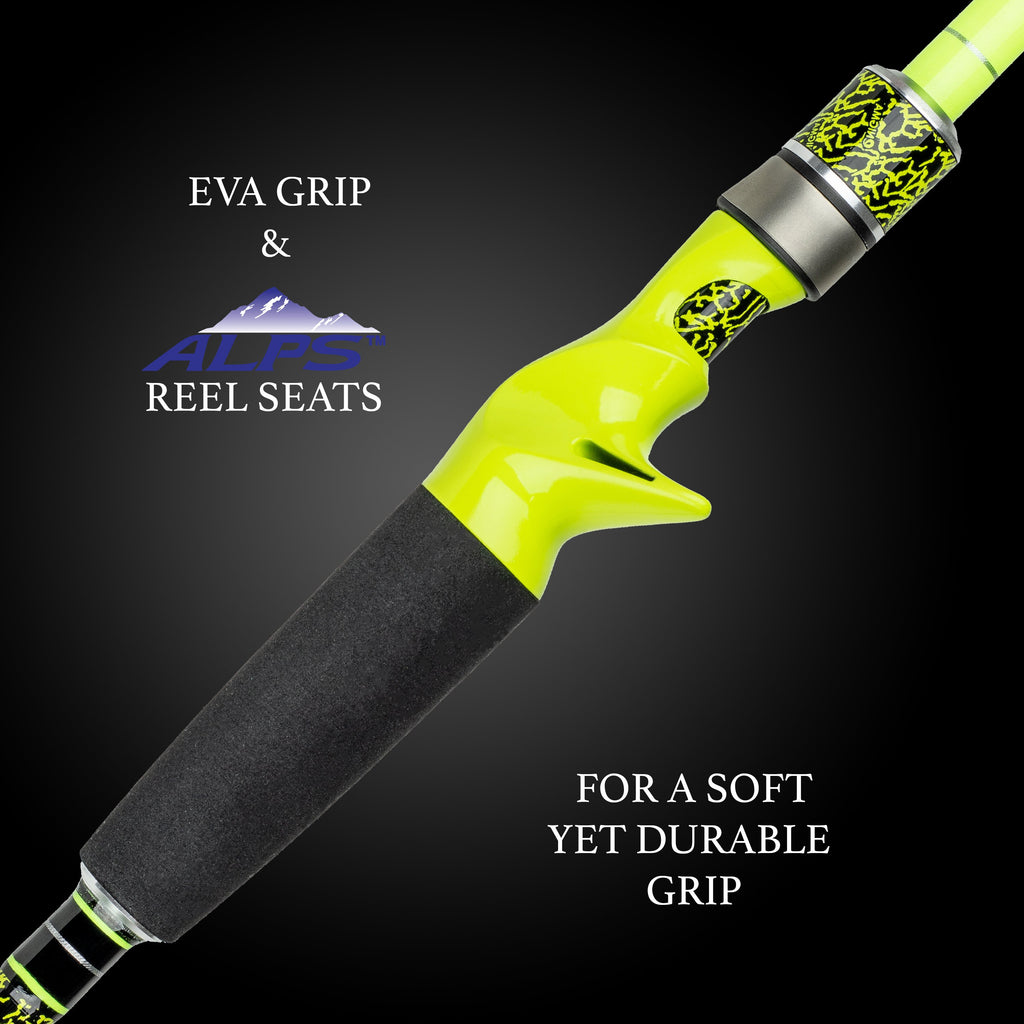 - ALL IN ONE ROD AND REEL – As soon as this baitcasting rod and reel combo arrives, you’re ready to get out on the water. The Phenom casting rod has titanium coated alp guides with Zirconium rings for durability. Finished with a premium EVA handle, this baitcasting rod delivers all-day fishing comfort.